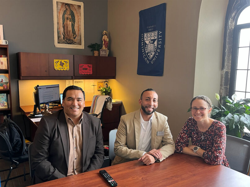 Armando Guerrero Estrada, dari kiri, Andrew Mercado dan Suster Christin Tomy di Universitas Dominika. (Foto RNS/Aleja Hertzler-McCain)