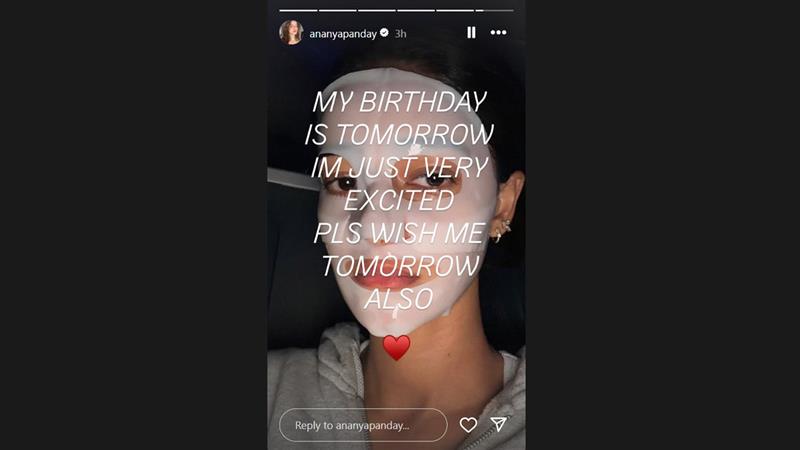 Dia memberi judul, “Saya benar-benar berharap saya bisa melakukan pull-up tahun ini.” Dalam kisah media sosial lainnya yang terakhir, Ananya membagikan foto selfie mengenakan masker wajah berwarna putih dan hoodie abu-abu muda, mengungkapkan kegembiraannya atas ulang tahunnya. Aktris ini tampak santai dan bersemangat serta menantikan hari besarnya. Dia menuliskannya sebagai, “Ulang tahunku besok. Aku sangat gembira. Tolong doakan aku besok juga.” Bukan hanya Ananya, ibunya, Bhavana Pandey, juga sama-sama bersemangat menyambut ulang tahun putrinya. Penayangan Perdana 'The Ba***ds of Bollywood': Ananya Panday Bertanya 'Mengapa Saya Tidak Ada di Foto Ini?', Saat Shanaya Kapoor Berbagi Momen Candid Dengan Aryan Khan dan Suhana Khan.