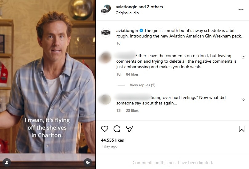 Halaman Instagram resmi Aviation American Gin membagikan video baru yang menampilkan wajah merek, aktor Ryan Reynolds. Video ini menunjukkan sebuah collab dari dua mereknya, Aviation Gin dan Wrexham AFC dan dalam Avatar pria lucu sejatinya, aktor ini membawa Anda melalui iklan, yang dibagikan bersama dengan judul, “Gin ini halus tetapi jadwal tandang agak kasar. Memperkenalkan Paket Aviation American Gin Wrexham yang baru. [sic]”Sejauh ini, sangat bagus. Namun, bagian komentar tidak cocok dengan suasana hati Ryan Reynolds! Itu buruk (baca: Bloodbath)!