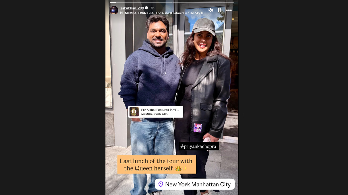 Usai menghadiri acara Zakir, Priyanka membagikan selfie dan menulis: “Terima kasih atas kebaikan, humor, dan kreativitas Anda. Senang mengenal Anda. @zakirkhan_208.”