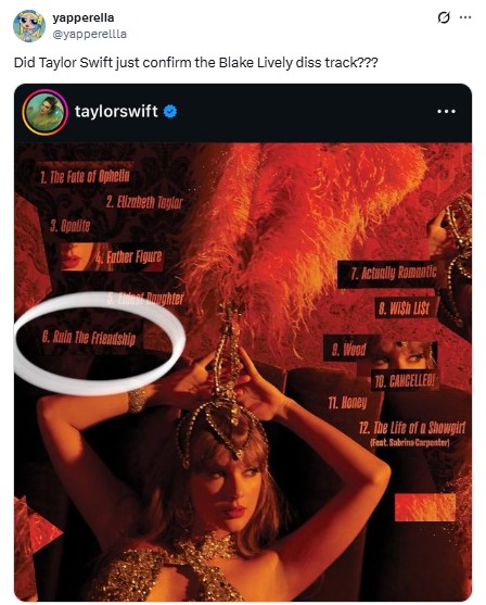 Fans tampaknya benar -benar percaya Taylor Swift memiliki beberapa trek diss melawan Blake Lively di album barunya